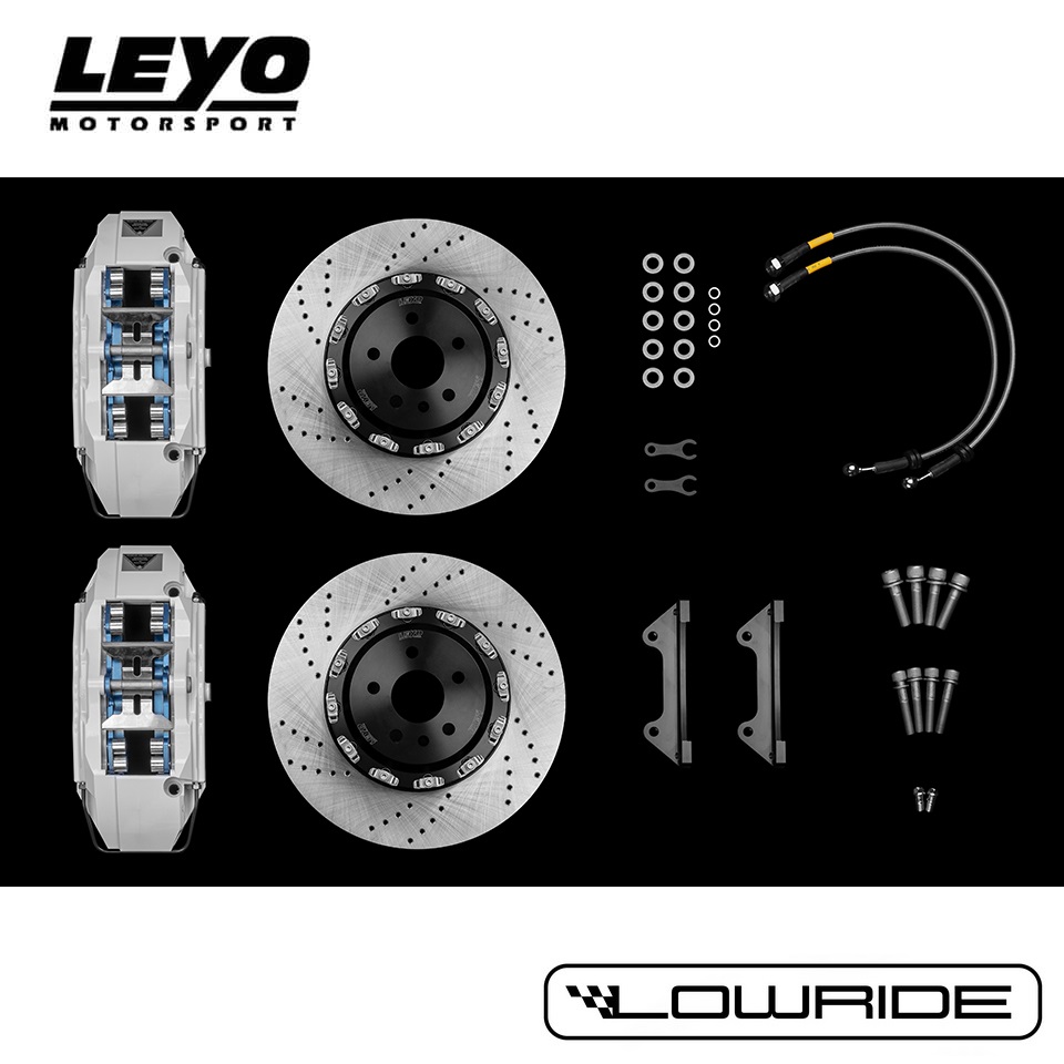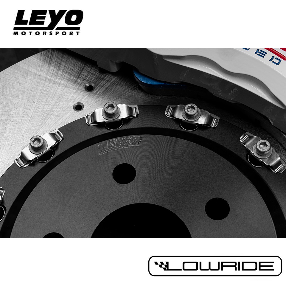 Zestaw Big Brake LEYO Motorsport, umożliwiający łatwą konwersje przedniego układu hamulcowego na wydajniejszy, bazujący na 6cio tłoczkowych zaciskach.