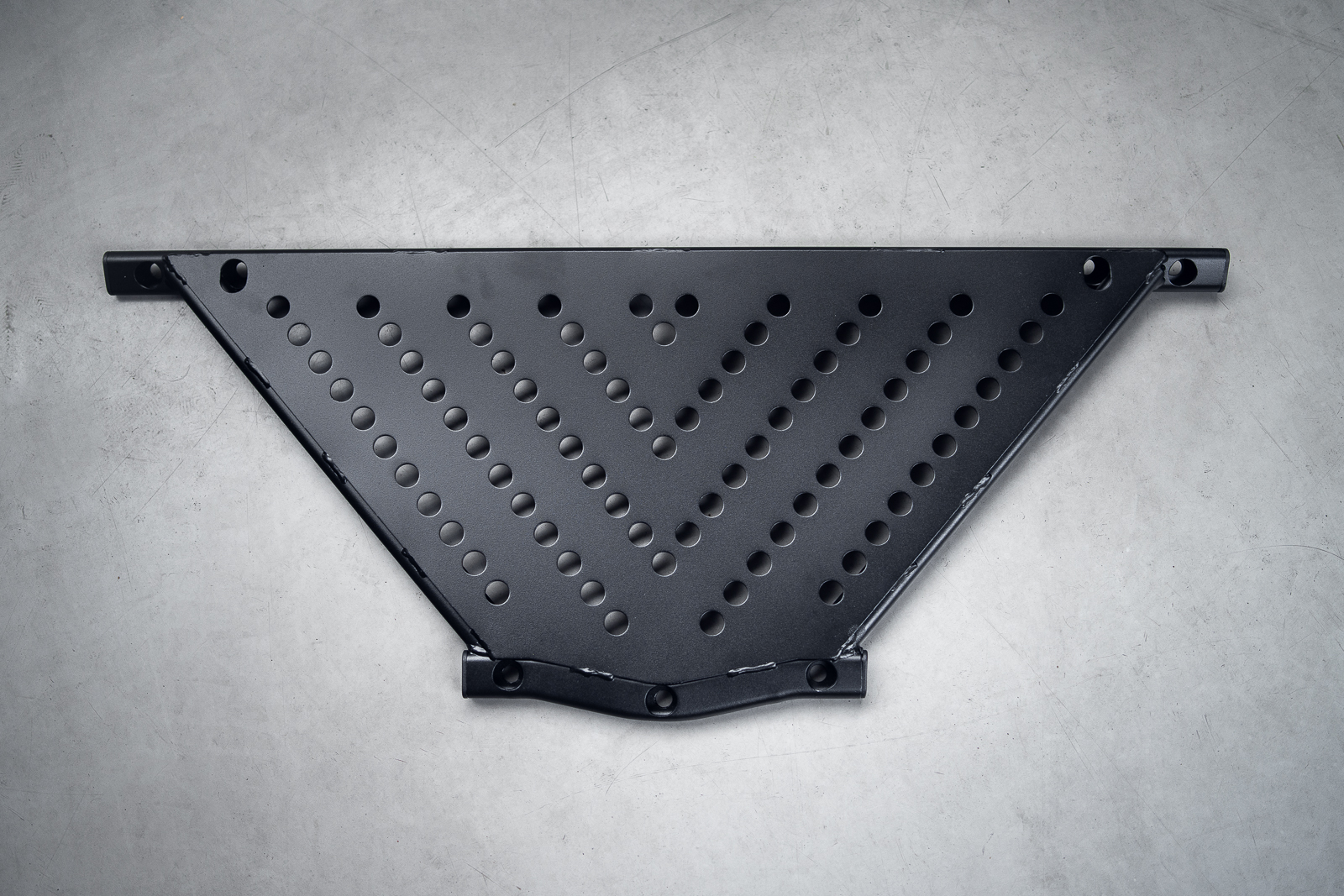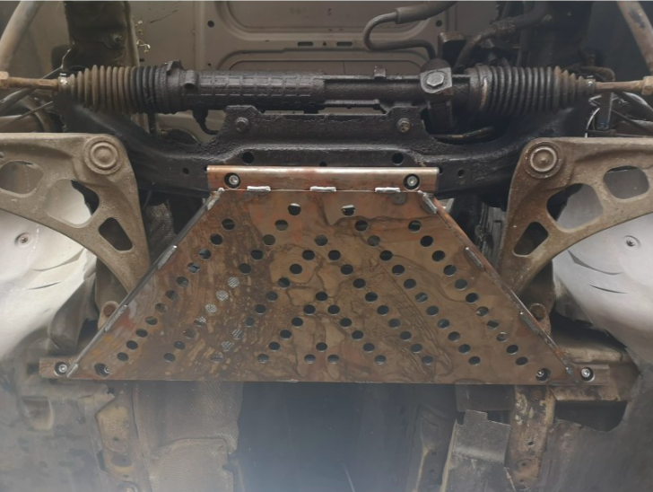 Rozpórka wykonana w całości ze stali, główne elementy produkowane z profili tzw. Płaskoowali 40×20 i grubości ścianki 3mm. Osłona miski to materiał o wysokiej odporności na ścieranie (Domex 700). Całość dokładnie dopasowana do podwozia, mocowana w fabrycznych miejscach. Solidna i trwała, zapewniająca maksymalną sztywność przedniej części nadwozia, oraz doskonale chroni szczególnie narażone na uszkodzenia alluminiowe miski olejowe.