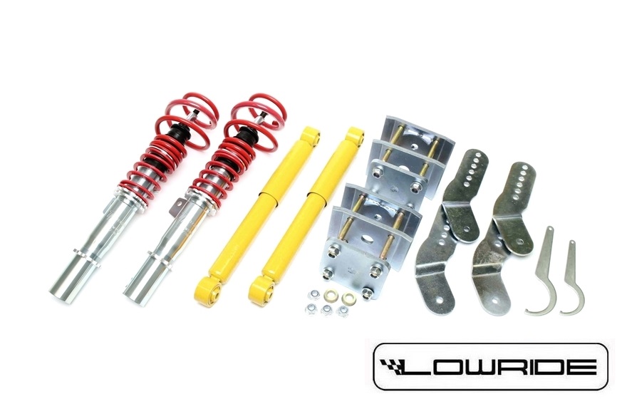 Zestaw obejmuje elementy do zawieszenia przedniego i obniżenia zawieszenia tylnego.