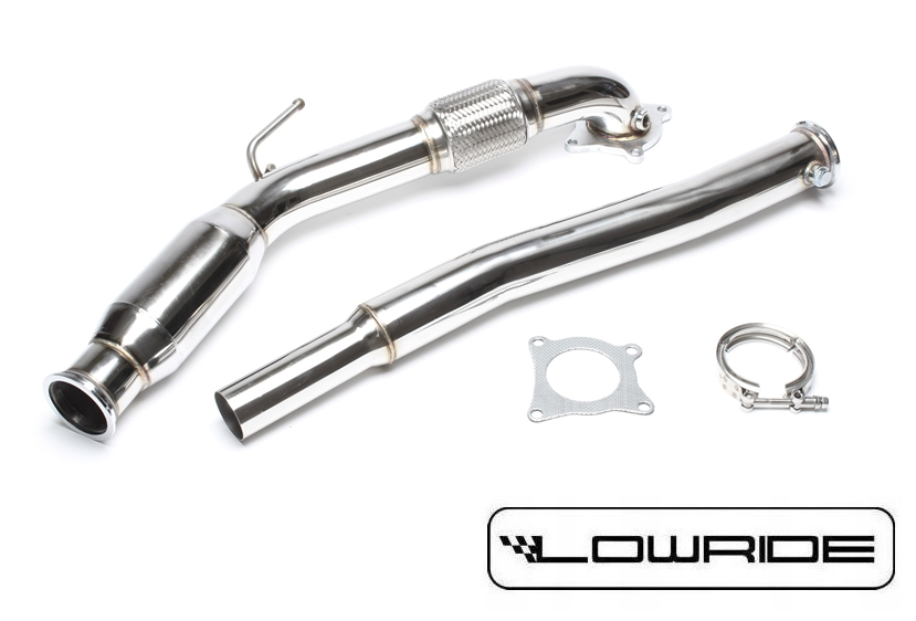 Downpipe o większej przepustowości wraz ze sportowym katalizatorem firmy TA-Technix ze stali nierdzewnej INOXX do samochodów VW Golf 5 GTI, Audi A3 typ 8P, Seat Leon 5F Cupra, Cupra R, Skoda Octavia RS.