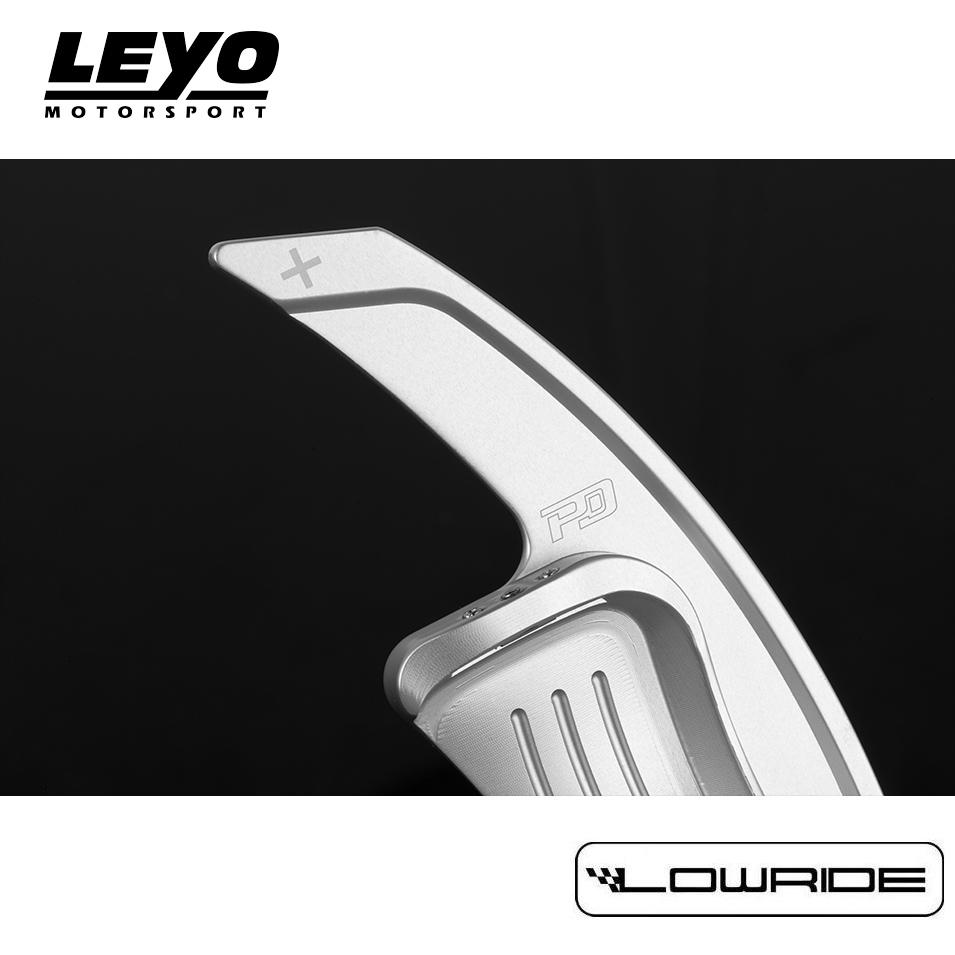 Zestaw sportowych manetek/łopatek zmiany biegów automatycznej skrzyni DSG renomowanej amerykańskiej firmy LEYO Motorsport. Łopatki montowane na seryjne bardzo małe manetki.